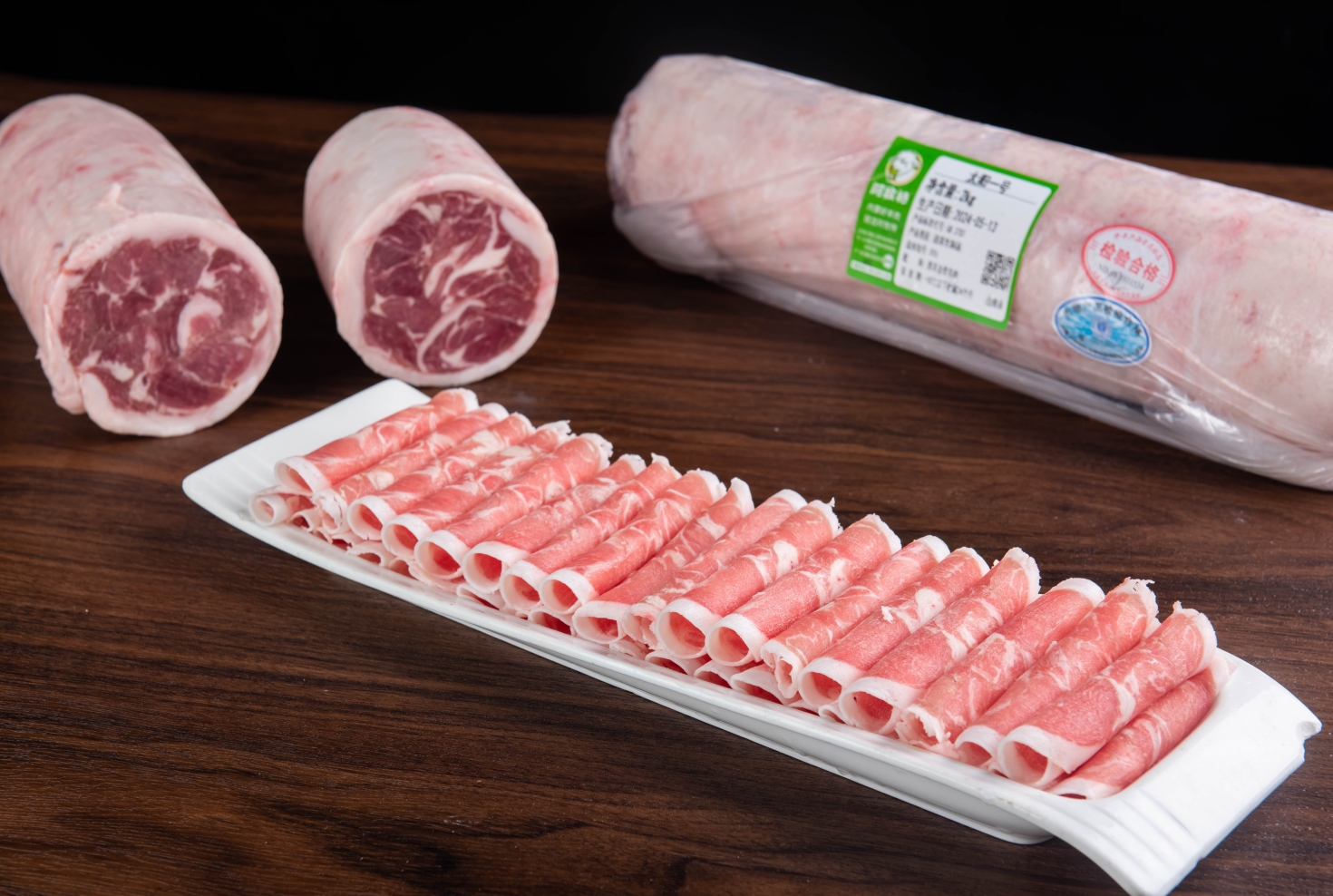 每一片都取自羔羊后腿,精準切出三層肥瘦相間的紋理,就像給羊肉穿上了 “條紋衫”,顏值超高!