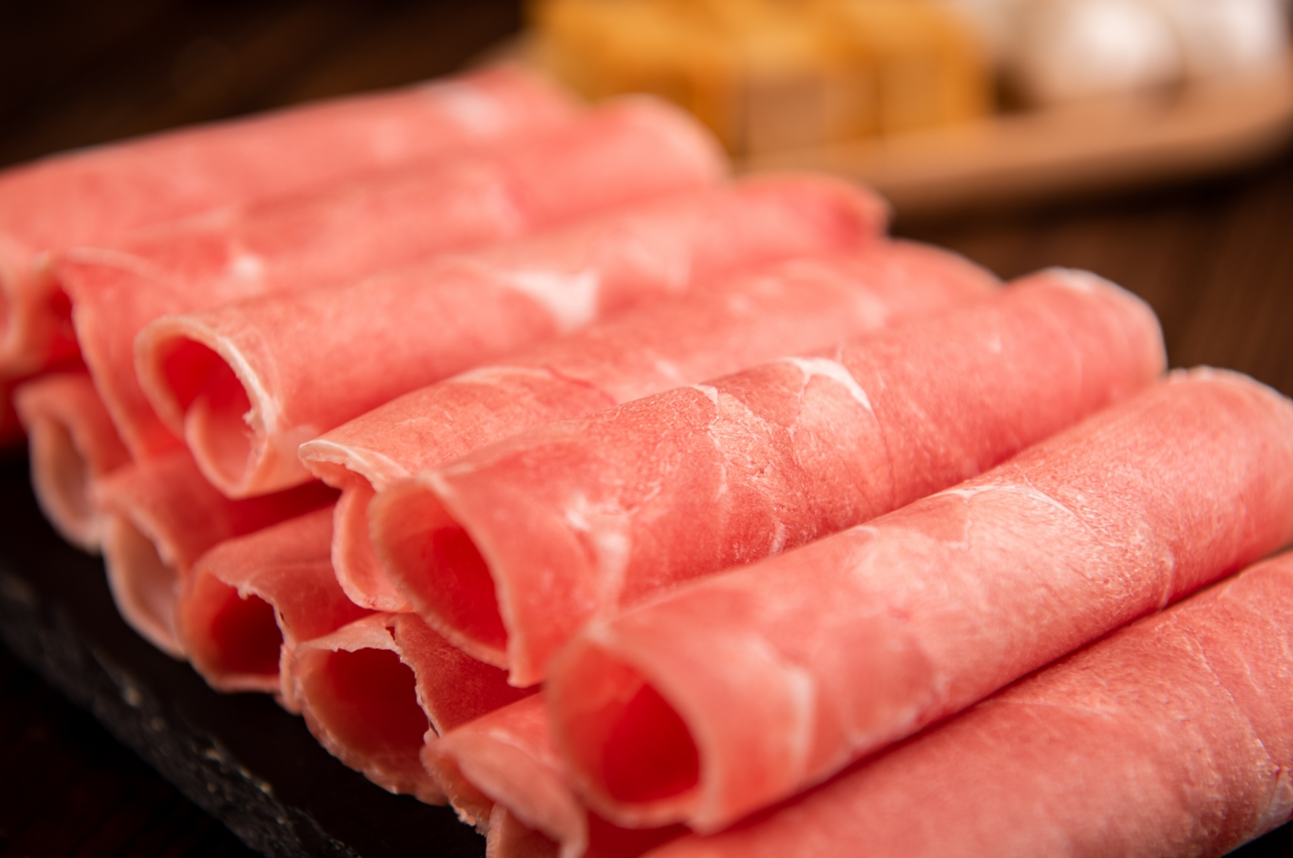 精選優質背肉,肥瘦比例恰到好處,肉質細膩柔軟,每一片都薄厚均勻,在鍋里一涮,立馬變色卷曲。